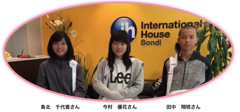私は今回のシドニーでの体験を通して、英語を学ぶ楽しさ、そして世界を知ることの楽しさを改めて感じることができました。 シドニーに三週間ホームステイさせていただいている間、インターナショナルハウスボンダイという学校に通いました。そこには様々な国の人が英語を学びに来ていて、年齢も様々でした。私は初め、何を話して良いか分からず全く人と話せませんでした。しかし、ペア学習を通して仲良くなった人をきっかに他にも友達をつくることができました。クラスでは使われる単語で知らないものも多く、積極的に発言することはできなかったのですが、クラス終了後、私はアクティビティに参加していたのでその時に自然な英語を話して友達と会話することができました。自分が英語を話す分には、中学校までに習った文法で日常会話に特に支障は無かったのですが、やはり単語の知識量を増やさなければと実感させられました。インターナショナルハウスボンダイに通っていると、色んな人に出会いますが、その出会いの中で感じたのは、他の国の人は私と同じ16歳でもはるかに大人っぽく、自立しているということでした。それと同時に、日本人はとても思いやりがあるということと、自分の意見を言わないということも改めて感じさせられました。クラスで話し合いをする時でも、特にフランスから来ていたクラスメイトは自分の考えを言い、反論されたらすぐにそれに反論します。もし、その話し合いを日本語でしていたとしても、私はあのフランス人のように自分の考えをしっかりと相手に伝えきることはできないだろうと思います。日本に住んでいれば、わざわざ口で言わずとも皆優しいのでこちらの思いをくみとってくれます。私は今まで、そんな日本ならではの優しさに甘えきっていたように感じます。 私は将来、世界中と関わる仕事をしたいと考えています。世界と関わるなら、今回学んだことを参考に、自分の考えもしっかり相手に伝えられるようになりたいです。また、それだけではなく、もっとオーブンに人と関われるような自立した大人になりたいと強く思いました。今回のシドニーでの体験はこれからの私の人生をきれいに、彩ってくれたように感じます。かけがえのない体験をさせていただいたことに感謝しています。