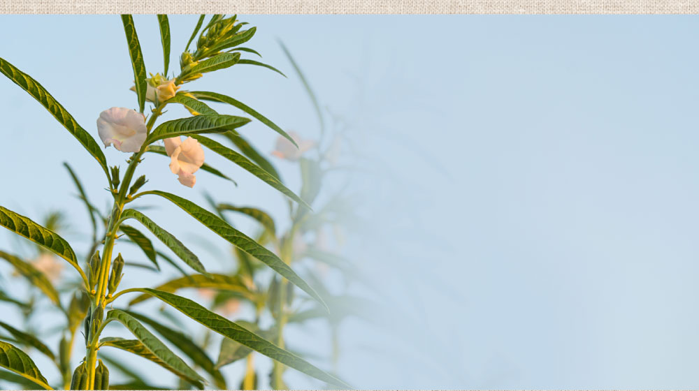 ごま(学名:sesamum indicum L.)はゴマ科ゴマ属の一年草。原産地は熱帯アフリカです。数千年前に世界に広がっていきました。日本には中国から伝えられたとされ、奈良時代にはすでに重要な作物として栽培されていたようです。成長が早く、種まきからわずか約100日で収穫できます。熱帯アフリカ生まれだからか暑さに強く、荒れ地でも栽培でき、少々の干ばつでも収穫できる頼もしい生命力を備えています。